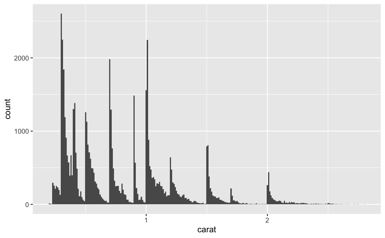 Every variable has its own pattern of variation, which can reveal interesting information. The best way to understand that pattern is to visualise the distribution of the variable’s values. To examine the distribution of a categorical variable, use a bar chart.